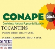 O Sindicato dos Trabalhadores em Educação no Estado do Tocantins (SINTET) convida para a primeira etapa preparatória da Conferência Nacional Popular de Educação (CONAPE) no Tocantins, que será realizada nos dias 27 e 28 de outubro. A abertura do evento será às 8h, do dia 27, no Victória Plaza Hotel, em Palmas.