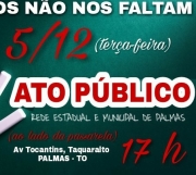 O Sindicato dos Trabalhadores em Educação no Estado do Tocantins (Sintet) convoca todos os trabalhadores e trabalhadoras em Educação para participarem do ATO PÚBLICO, que será realizado na terça-feira (05/12), às 17 horas. A concentração será na Avenida Tocantins (ao lado da passarela), em Taquaralto - Palmas - TO.