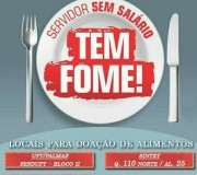 Devido ao anúncio do corte de pontos dos trabalhadores da educação municipal de Palmas que estiveram em greve durante 22 dias, o Sindicato dos Trabalhadores em Educação no Estado do Tocantins (SINTET) lança a campanha “Servidor Sem salário TEM FOME”. O objetivo da campanha é arrecadar alimentos para os profissionais da educação que tiveram seus pontos cortados.