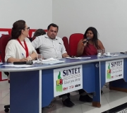 O presidente do Sintet, José Roque Santiago falou do pedido da senadora para estar presente na reunião e relatou consulta ao plenário sobre o consentimento da visita.