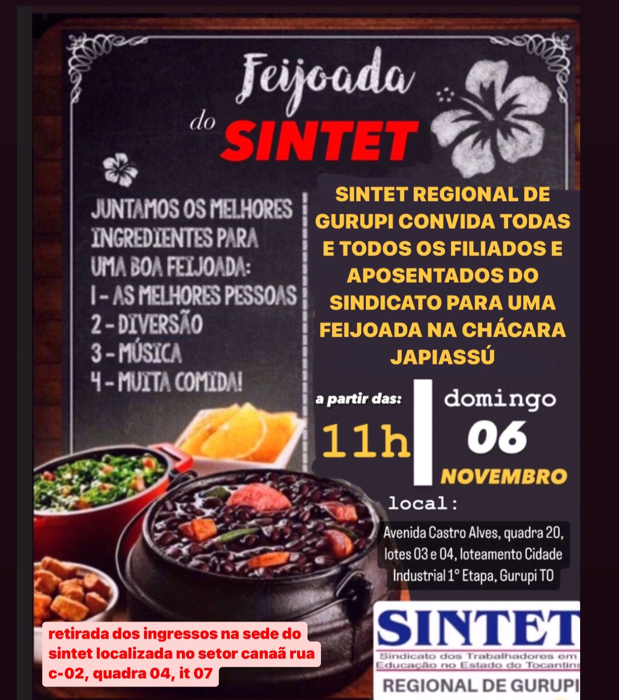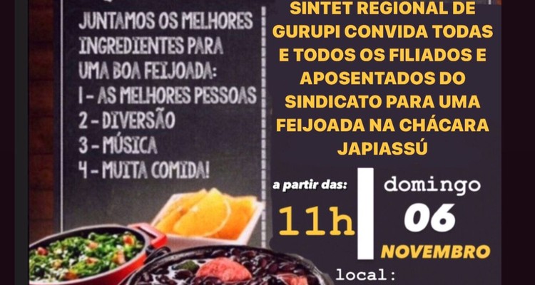 A diretoria do Sintet Regional de Gurupi convida seus filiados/as para a comemoração do Dia do/a Professor/a que acontece no domingo, dia 06 de novembro de 2022, em Gurupi.