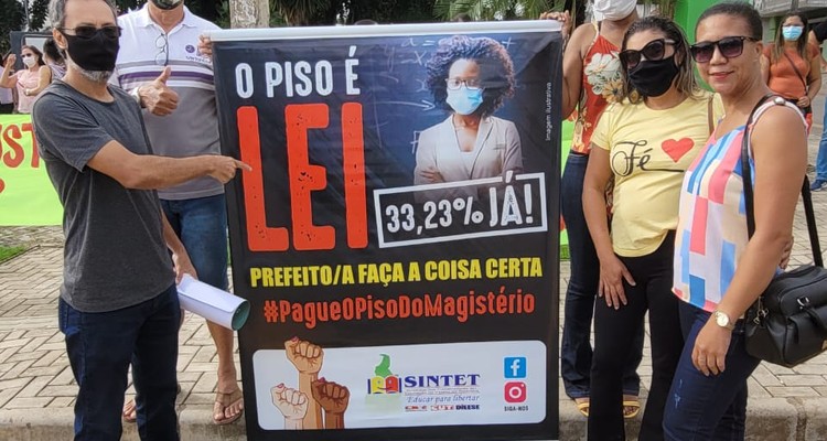 A semana do Sintet começou com mobilização nesta segunda, 14 de março, pelo pagamento do reajuste do piso em Dianópolis, na região sudeste do estado. O índice do reajuste do piso dos professores para o ano de 2022 é de 33, 23%. Professores/as da rede municipal foram às ruas no início da manhã cobrar do prefeito José Salomão o cumprimento da lei do piso. O presidente da regional de Dianopolis, Jailton Pereira e o presidente do Sintet Regional de Palmas e também Secretário Adjunto de Assuntos Municipais Fábio Lopes falaram em praça pública à população em geral sobre o direito da categoria durante o ato público.