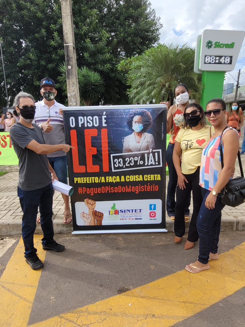 A semana do Sintet começou com mobilização nesta segunda, 14 de março, pelo pagamento do reajuste do piso em Dianópolis, na região sudeste do estado. O índice do reajuste do piso dos professores para o ano de 2022 é de 33, 23%. Professores/as da rede municipal foram às ruas no início da manhã cobrar do prefeito José Salomão o cumprimento da lei do piso. O presidente da regional de Dianopolis, Jailton Pereira e o presidente do Sintet Regional de Palmas e também Secretário Adjunto de Assuntos Municipais Fábio Lopes falaram em praça pública à população em geral sobre o direito da categoria durante o ato público.