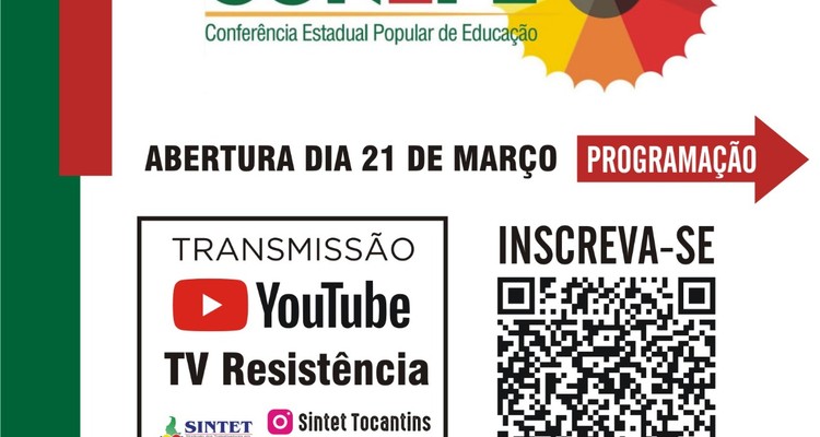 A Conferência Estadual organiza o debate sobre as proposições para a Conferência Nacional Popular de Educação, que será realizada de forma presencial e virtual no mês de julho de 2022, em Natal-RN. O Lançamento da CONEPE-TO será online dia 21 de março.