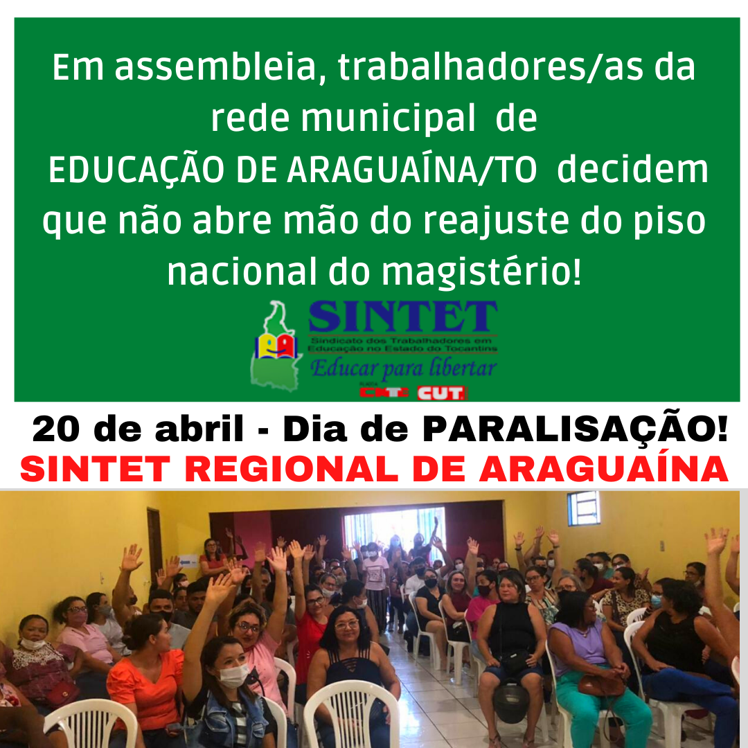 Os trabalhadores da rede municipal de educação de Araguaína decidiram em assembleia, realizada na noite desta segunda-feira (11), que vão paralisar as atividades no próximo dia 20 de abril.