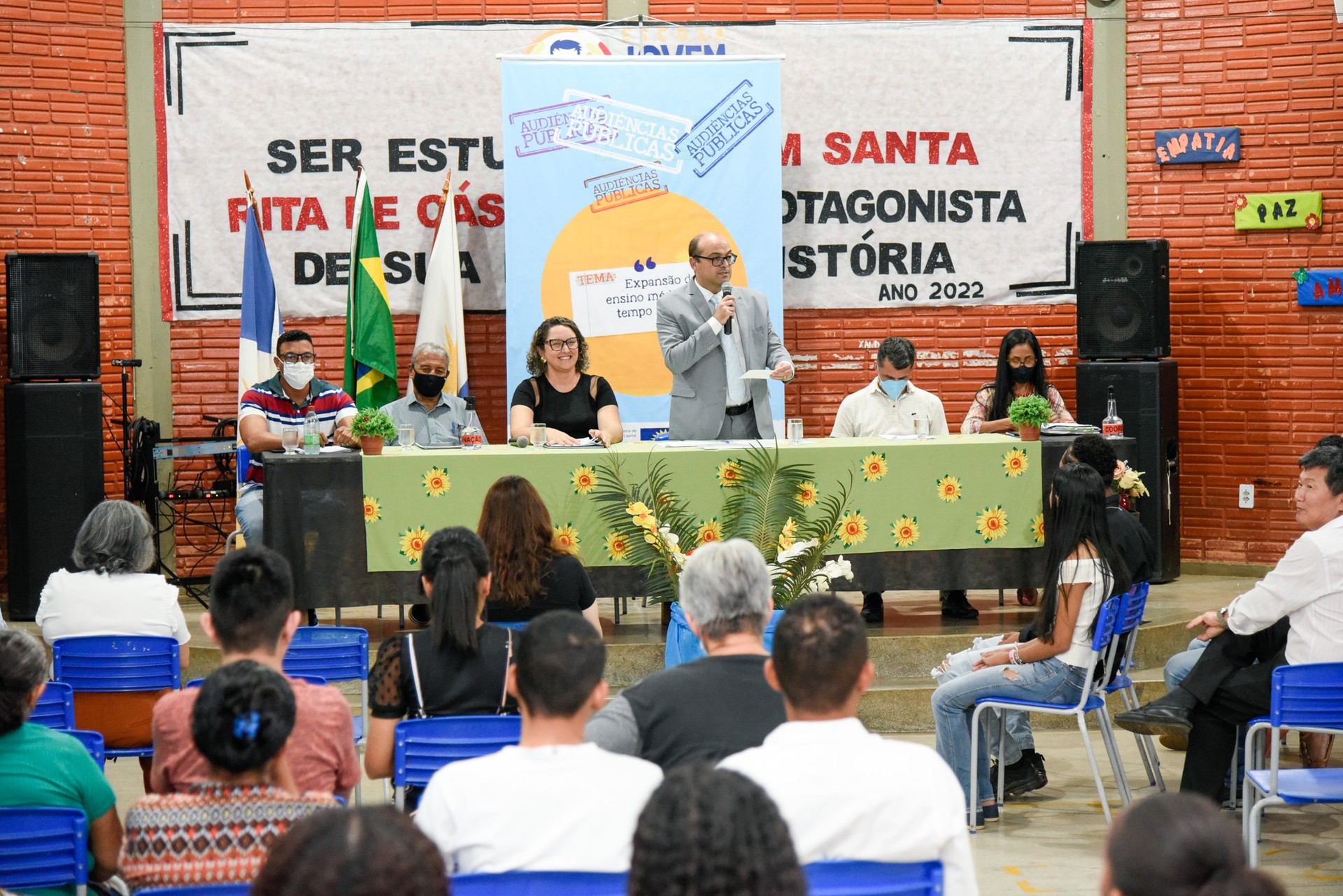 O presidente do Sintet Regional de Palmas, Fábio Lopes defendeu melhorias nas políticas públicas da educação básica e a gestão democrática nas escolas públicas durante a segunda audiência pública realizada pelo Ministério Público do Tocantins (MPTO) na última sexta-feira, 24. A audiência pública para debater o ensino de tempo integral aconteceu no Centro de Ensino Médio de Tempo Integral Santa Rita de Cássia no Jardim Aureny I, região sul da capital.