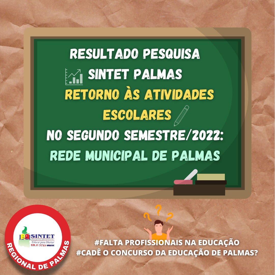 O Sintet Regional de Palmas realizou entre os dias 5 e 20 de agosto de 2022, uma pesquisa para avaliar o cenário no retorno às atividades escolares do segundo semestre nas escolas da rede municipal de Palmas.
