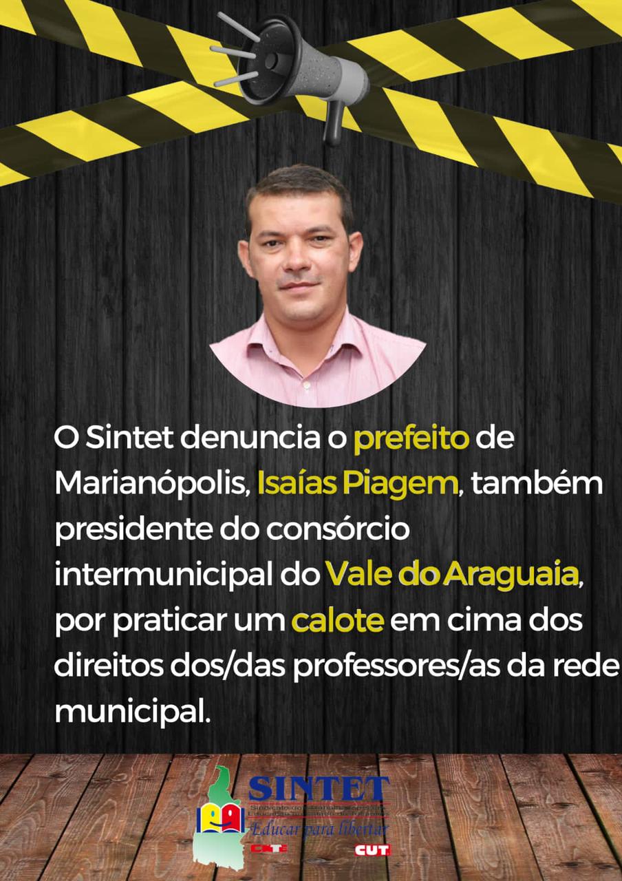 Desde o mês de janeiro de 2022, que o Sindicato dos Trabalhadores em Educação no Estado do Tocantins (Sintet) provoca a Prefeitura de Marianópolis sobre a necessidade do cumprimento da lei do piso do magistério, mas o prefeito Isaías Piagem se nega a atender a lei.