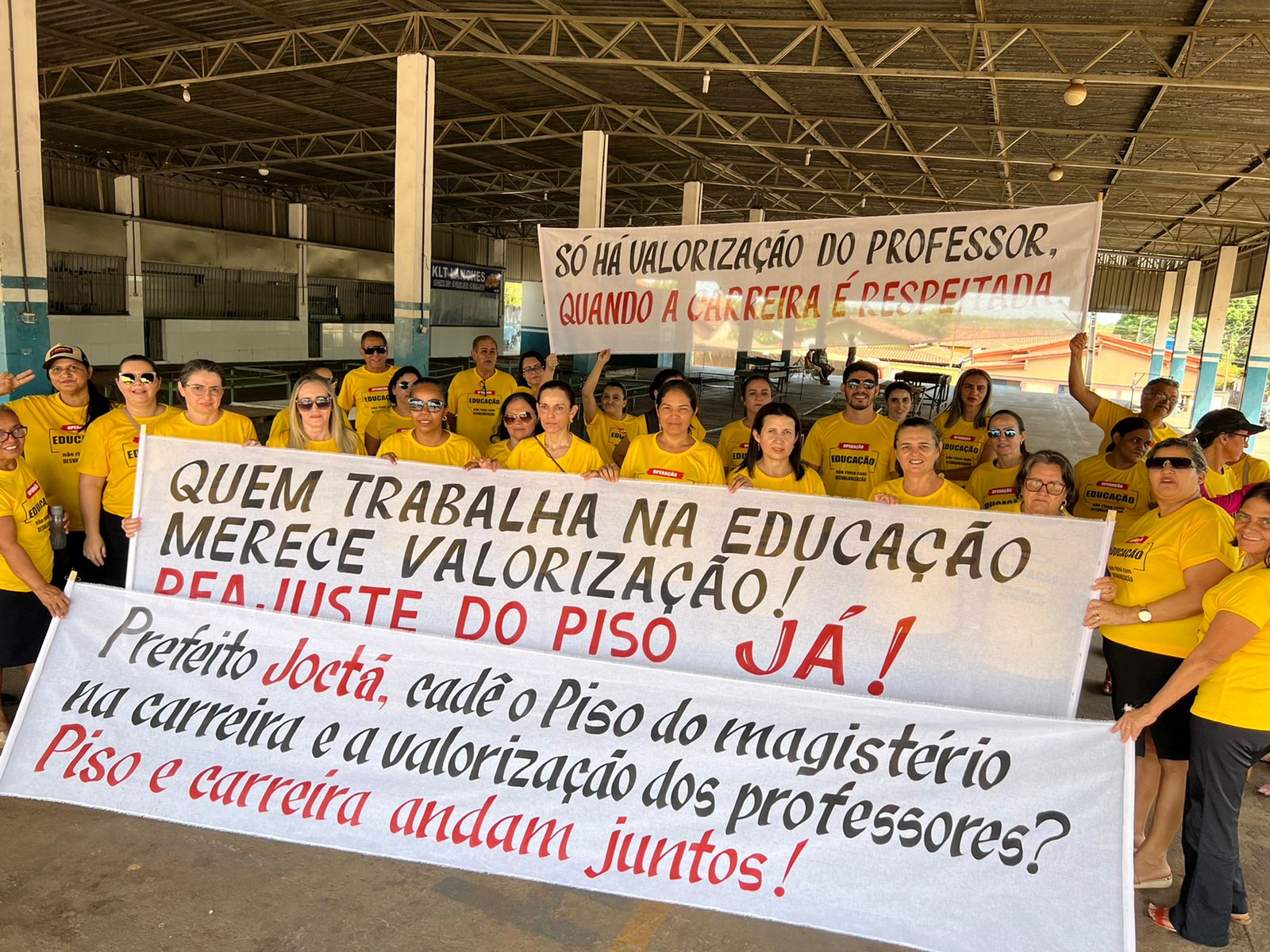“Os professores estão reivindicando direitos respaldados em lei, a gestão só precisa cumprir a lei, pagar o piso é lei, valorizar os profissionais do magistério é lei, e nós sabemos que tem recursos porque o Fundeb é recurso próprio da educação”, disse Iolanda Bastos, presidente do Sintet Regional de Guaraí.