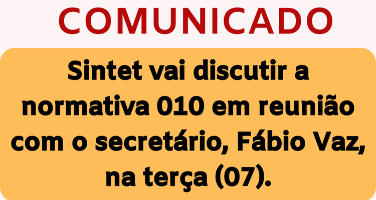 O presidente do Sintet, José Roque Santiago informa aos trabalhadores da rede estadual de educação que está agendada uma reunião com o Secretário Estadual de Educação, Fábio Vaz, na Seduc, na próxima terça-feira, 07 de fevereiro, às 14 horas, para tratar da normativa nº 010/2023 que dispõe sobre a lotação e remoção dos professores.