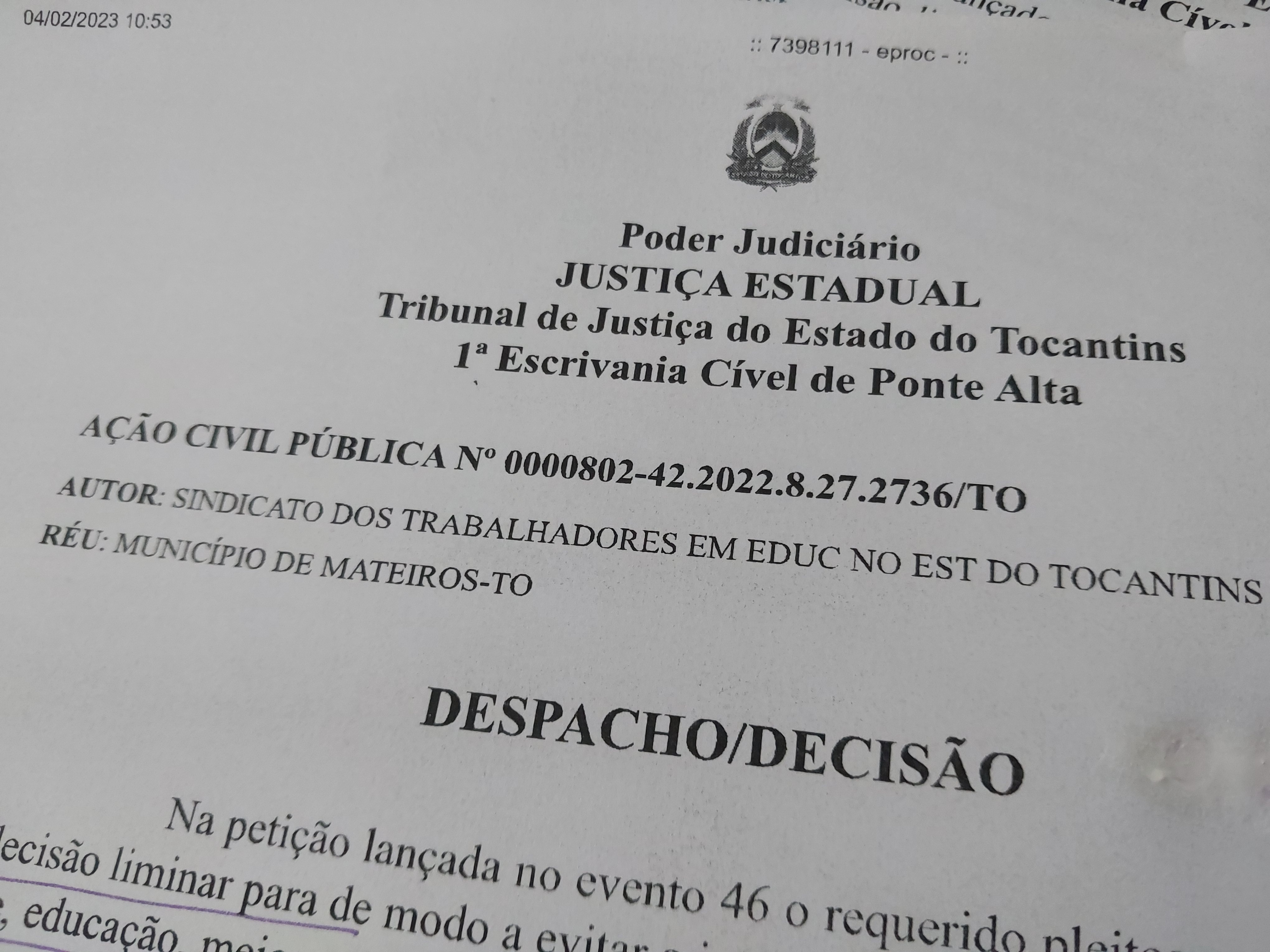 A ação em favor da luta dos profissionais da educação peticionada pelo Sintet Regional de Palmas é da 1° Escrivania Cível de Ponte Alta e foi publicada dia 04 de fevereiro de 2023.