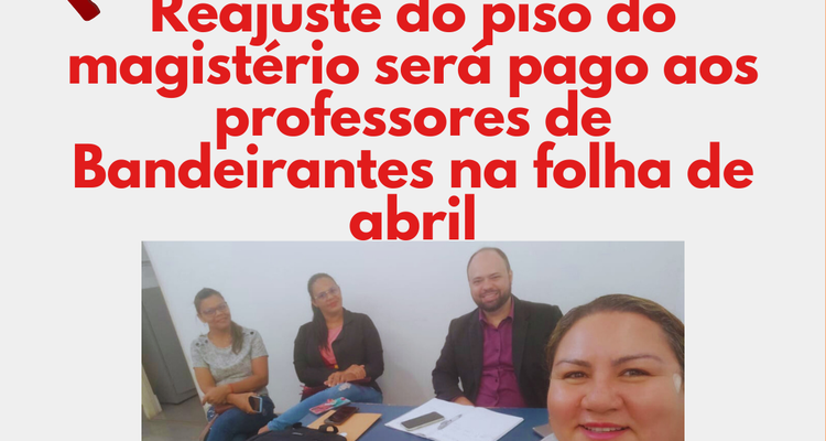 Em reunião realizada na segunda-feira (17), o Sintet fechou acordo sobre o pagamento de 14,95 % do reajuste do piso do magistério para os professores do município de Bandeirantes. O pagamento do reajuste será incorporado na folha de abril.