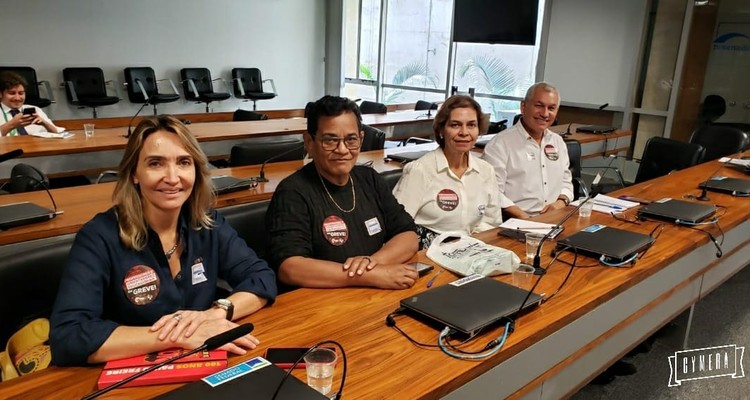 Na foto com: Heleno Araújo, presidente da CNTE, Fátima Silva, secretária-geral e Rosilene Côrrea, secretária de Finanças.