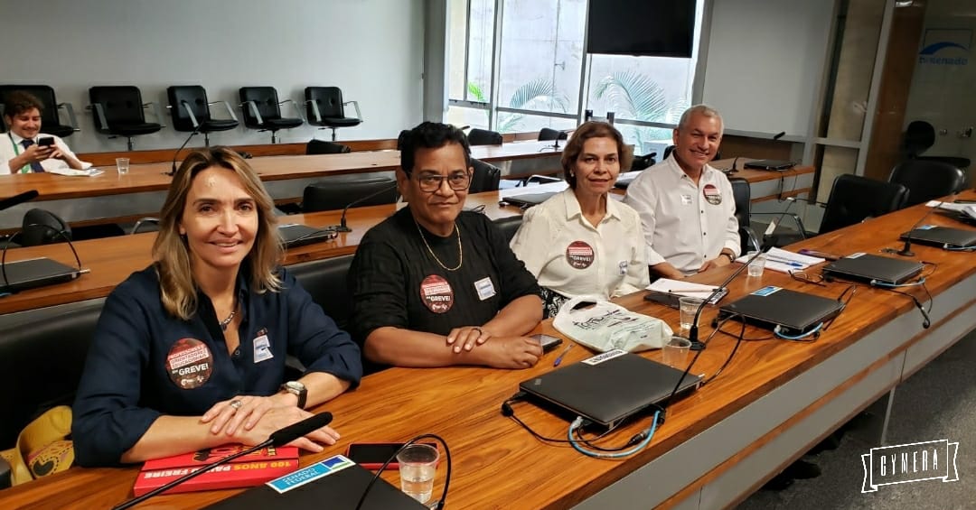 Na foto com: Heleno Araújo, presidente da CNTE, Fátima Silva, secretária-geral e Rosilene Côrrea, secretária de Finanças.
