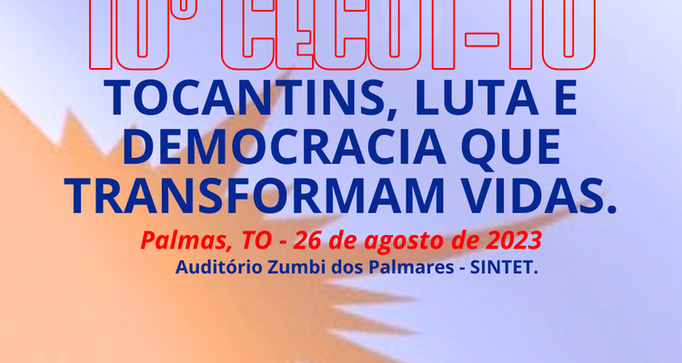 A CENTRAL ÚNICA DOS TRABALHADORES DO ESTADO DO TOCANTINS,de acordo com o Artigo 37 do seu Estatuto, convoca as Entidades Filiadas, Oposições Reconhecidas de representação em seu estado para o 10º Congresso Estadual da CUT/TOCANTINS, que será realizado no formato presencial, no dia 26/08/2023no período de 7:30hs às 17:00hs, no Sindicato dos Trabalhadores em Educação no Estado do Tocantins - SINTET, sito a 110 Norte Alameda 25 Lote 31 e 32 Plano Diretor Norte CEP 77.006-148, na Cidade de Palmas –TO, onde estarão empauta os seguintes assuntos:
