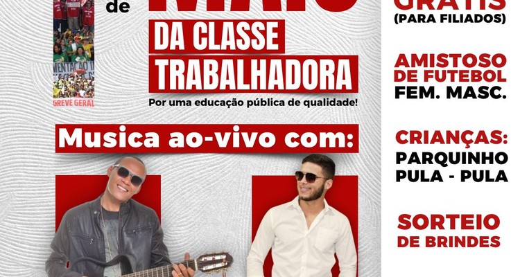 O Sintet convida seus filiados e filiadas para comemorar o 1º de maio - Dia do Trabalhador e da Trabalhadora, nesta quarta-feira (01), no Clube do Sintet, em Palmas.