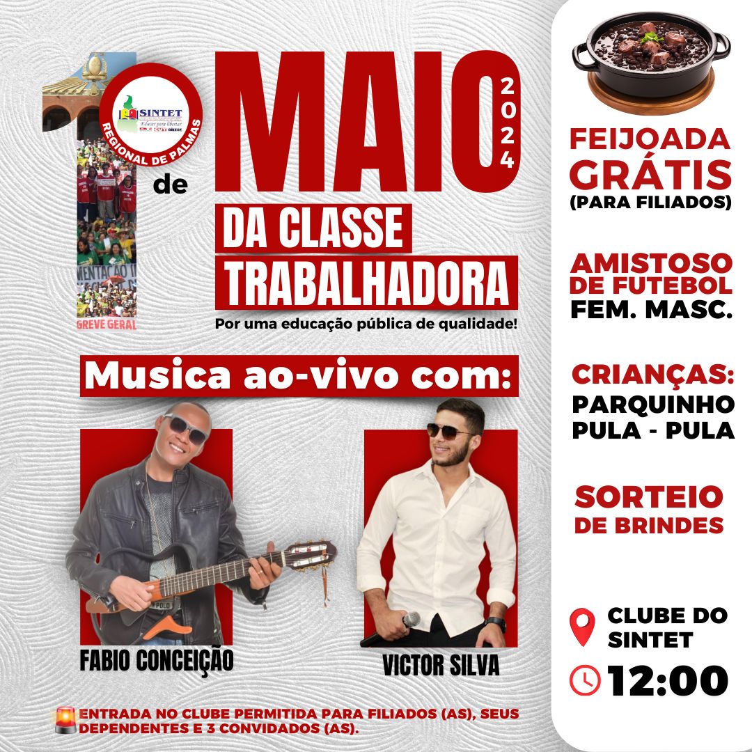 O Sintet convida seus filiados e filiadas para comemorar o 1º de maio - Dia do Trabalhador e da Trabalhadora, nesta quarta-feira (01), no Clube do Sintet, em Palmas.