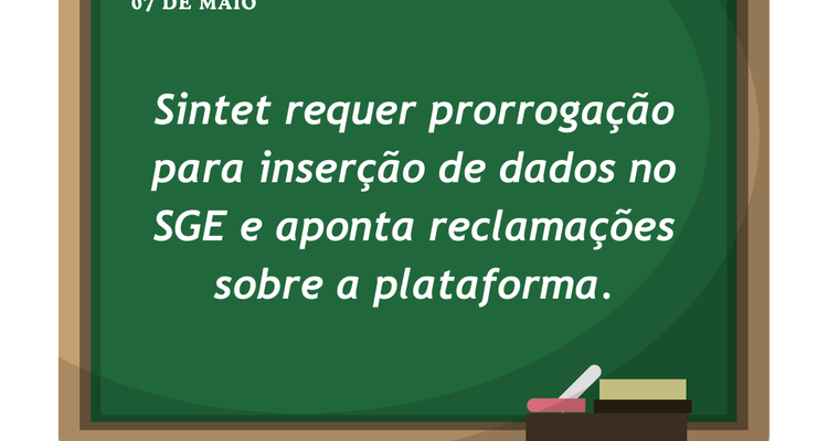 O Sintet protocolou ofício nesta segunda-feira, 06 de maio, ao Secretário estadual de Educação, Fábio Vaz, requerendo prorrogação do prazo final para inserção de informações do 1º bimestre no SGE, e que a Seduc promova uma formação dirigida aos novos docentes sobre o uso da plataforma.