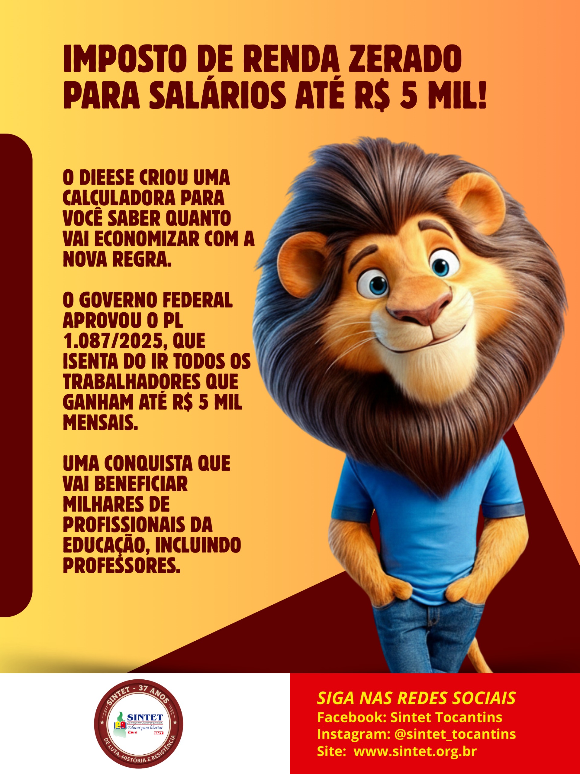 O Governo do Brasil anunciou a isenção total do Imposto de Renda (IR) a partir de janeiro de 2026 para quem ganha até 5 mil reais. A medida beneficiará mais de 10 milhões de pessoas. Entre elas grande parte dos profissionais da educação, incluindo professores que serão beneficiados com a redução.